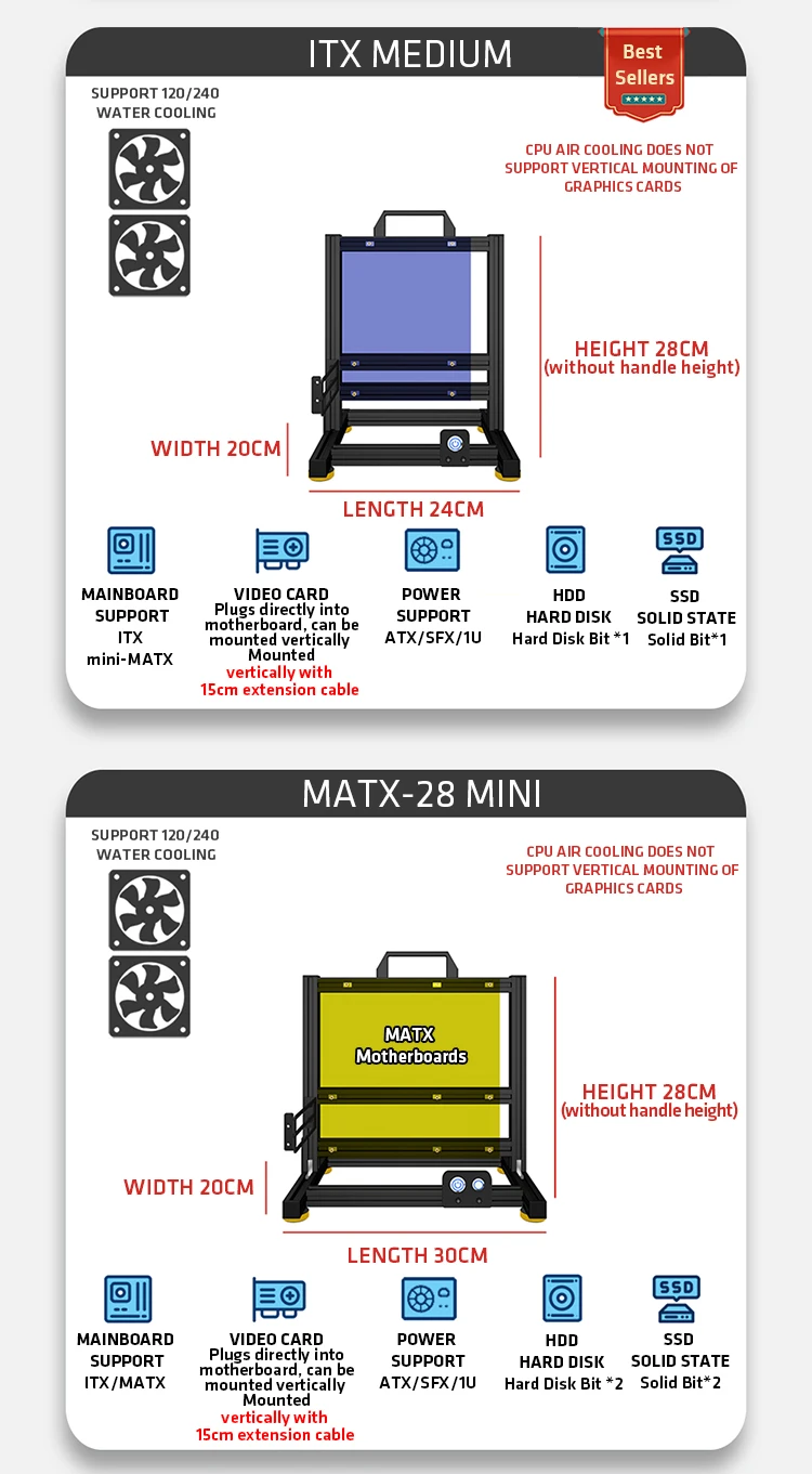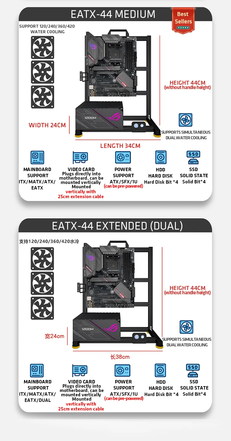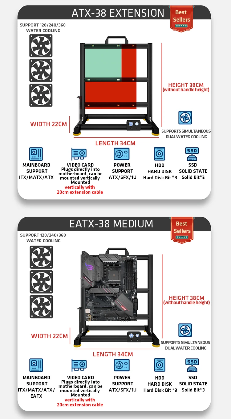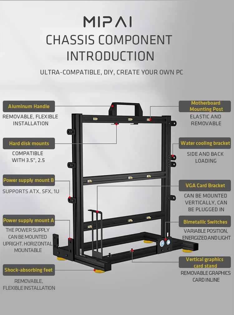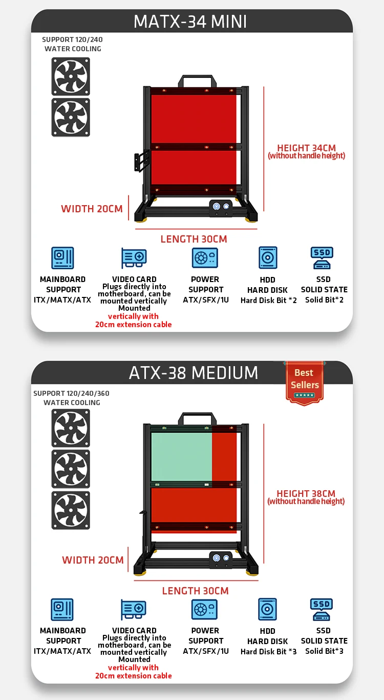 Open Bench pc case Table Customizable Aluminum Alloy Portable ITX MATX ATX Motherboard 240/360 Water Cooling PC Game Case